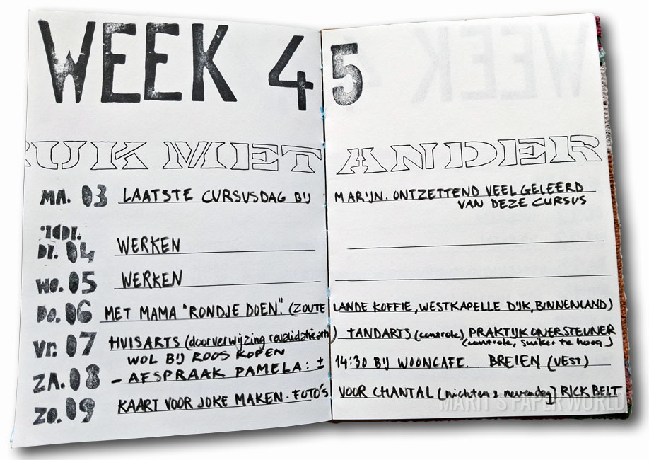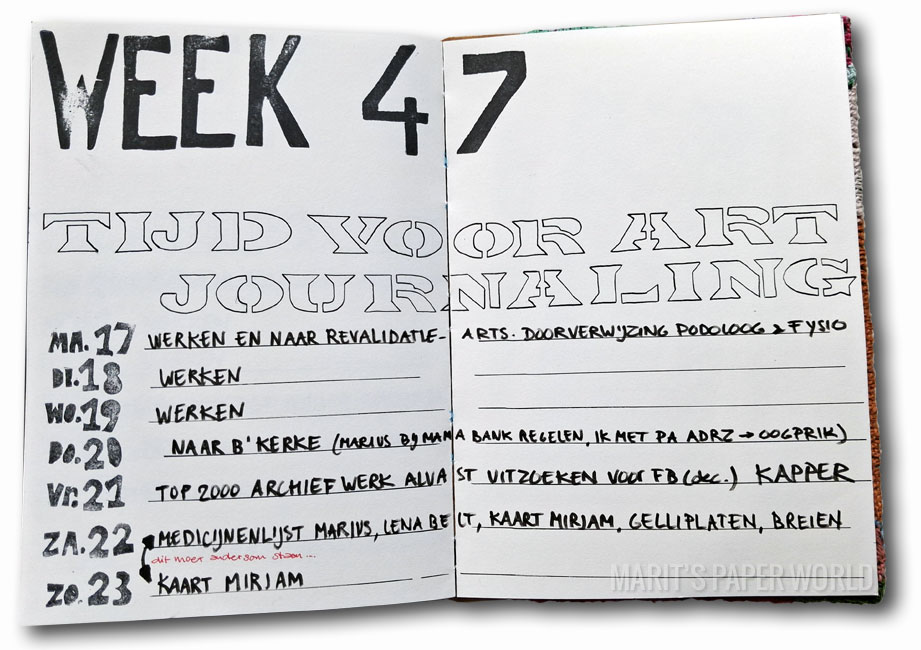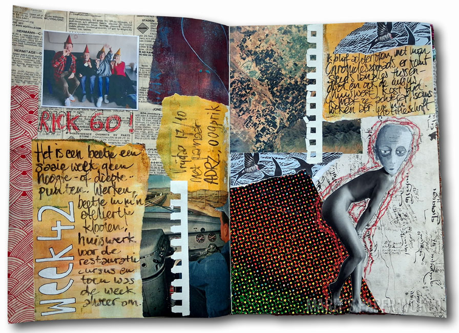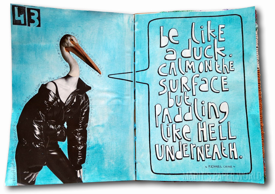I kept on running behind on creating weekly art journal spreads so at the end of this month I did what I advised my Chronicles workshop-students when they are running behind: I caught up up by making a few similar looking, fast and fun spreads.