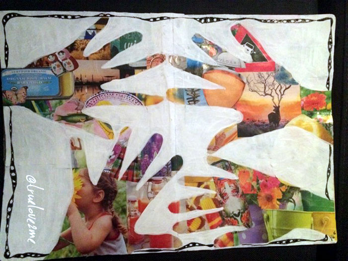 Oh dit is tot nu toe de meest gaafste dag van inzendingen vind ik, allemaal zo lekker kleurrijk, zo sprekend, wat een mooi geheel!! … en sorry dat ik de dag verkeerd had gezegd van een van mijn art journals 🙁 🙁 …